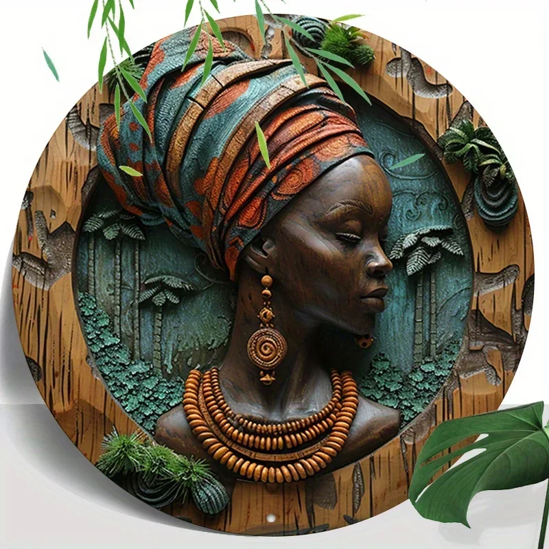 Vintage-Inspired 8X8" Aluminum Wreath Sign With Carved African Woman Design - Weatherproof & Easy To Hang For Home